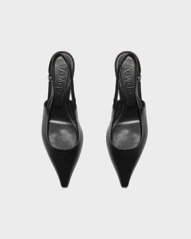 Refined slingback design The Aeyde Nappa Black Catrina Kitten Heels showcase fine craftsmanship with their pointed toe silhouette and metal buckle ...