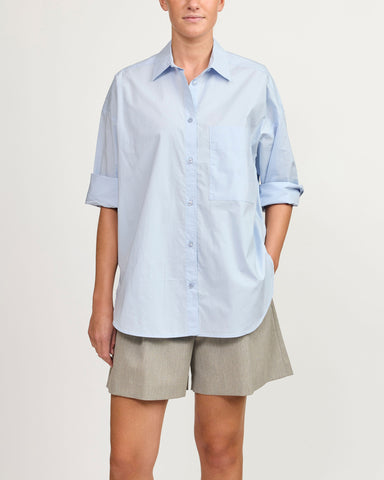 By Malene Birger Derris Shirt: Periwinkle blue The By Malene Birger Derris Shirt in Periwinkle Blue presents a harmonious blend of classic style an...