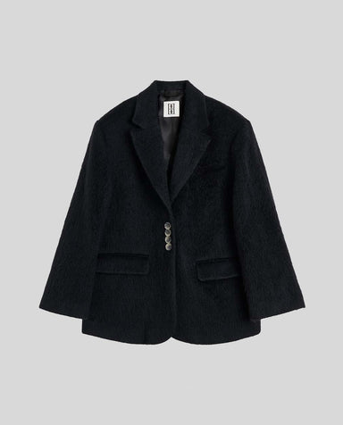 Textured contemporary designBy Malene Birger's Black Biena blazer showcases a distinctive fur-like texture that adds depth to its classic silhouett...