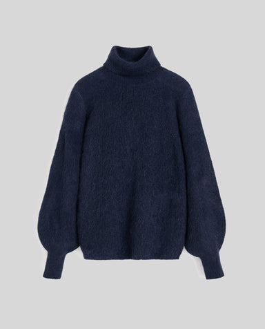 Refined dark blue knit The By Malene Birger Night Sky Magoo Knit is crafted from a luxurious blend of 52% mohair, 13% wool, and 35% polyamide, offe...