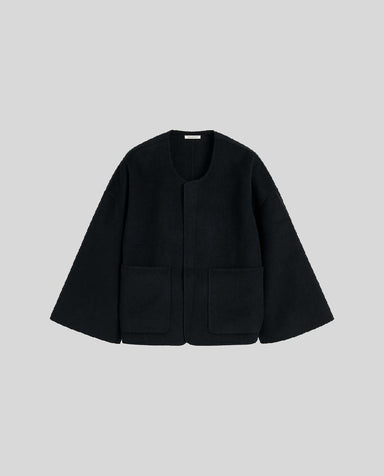 Contemporary minimalist designBy Malene Birger's Black Jacquie Jacket showcases pure wool construction with dropped shoulders, creating a modern si...