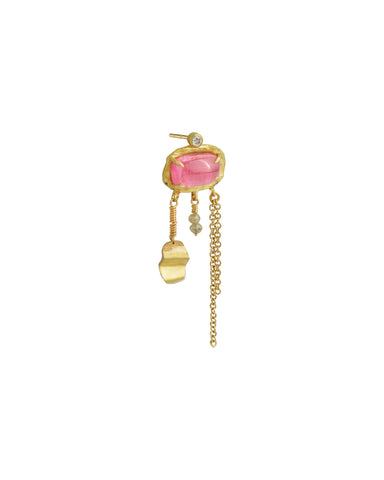 Statement in pink stoneSara Jin Mi presents this distinctive single earring, featuring a substantial pink tourmaline centerpiece set in 18k gold. T...