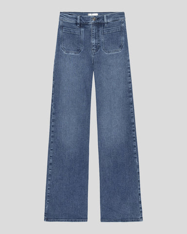 Refined denim design Frame's Nebula The Borrowed jeans showcase considered craftsmanship through their medium-dark wash, with carefully placed fadi...