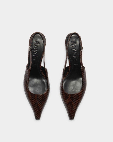 Aeyde Catrina Nappa Leather Port These chisel-toe pumps combine style with practicality. You'll appreciate the adjustable slingback straps for a se...