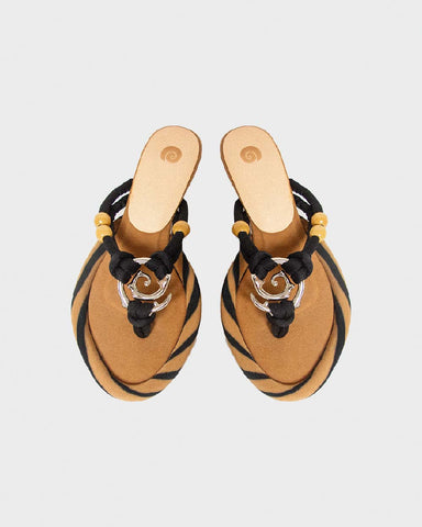 Italian artisanal designHandcrafted in Italy, these Ugo Paulon mules showcase a distinctive design with a tan base featuring black stripes and silv...