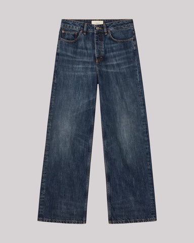 Contemporary wide-leg silhouette Jeanerica's Kyoto Jeans are crafted with attention to detail, showcasing a rich dark blue hue with artfully faded ...