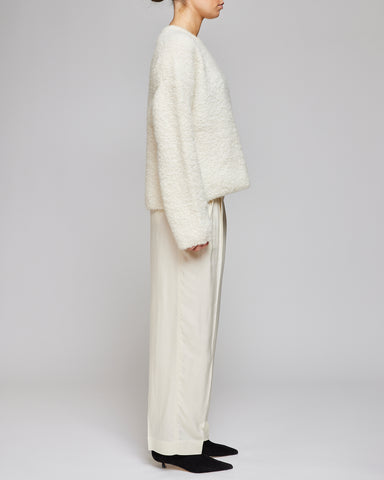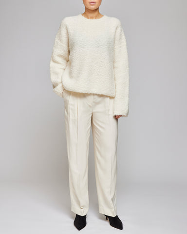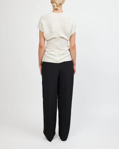 Ecru Pleated Trousers These Toteme trousers showcase a distinctive double-pleat construction that shapes their silhouette. The design combines a fl...