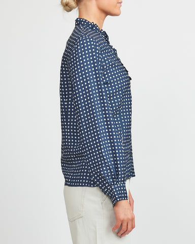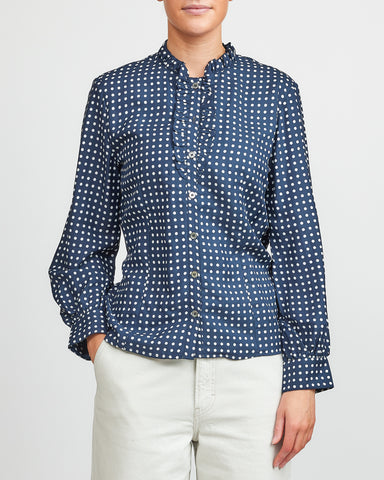 Polka dots and delicate detailsThe A.P.C Dark Navy Chemise Cassie combines white polka dots with refined frilled accents. Made from smooth viscose,...