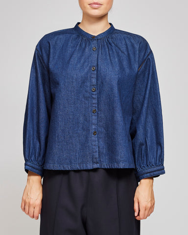 APC Dark Blue Blouse BethThis dark blue blouse from A.P.C. combines 100% organic cotton with thoughtful design details. The gathered neckline creat...