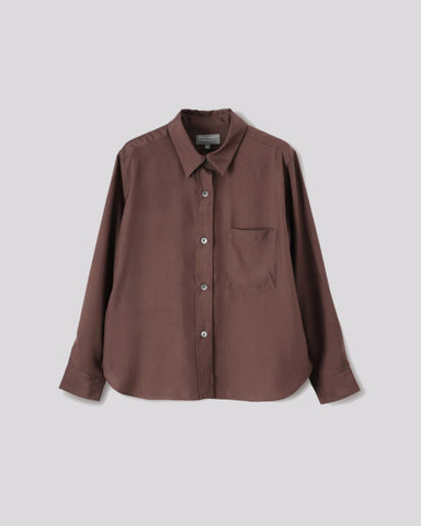 Rig brun silkeskjorte Margaret Howell Rich Brown Simple Shirt er fremstillet i 100 % silke, et materiale, der giver en blød haptik og naturlig åndb...