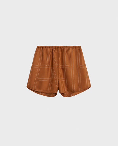 Toteme Terracotta Monogram Silk PJ Shorts