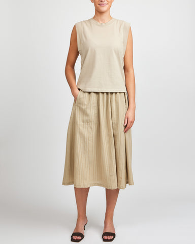 Refined cotton silhouetteThe Raquel Allegra Clay Day Skirt features a gathered elastic waistband that complements its relaxed silhouette. Crafted f...