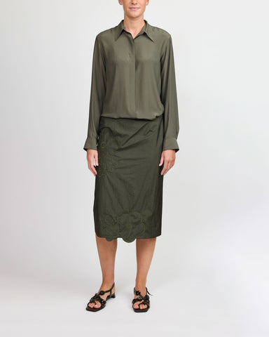 Cecilie Bahnsen Pine Green Allegra Skirt The Cecilie Bahnsen Pine Green Allegra Skirt features floral appliqués and a textured surface, making it s...