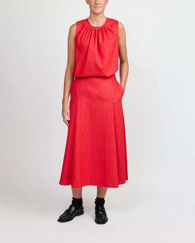 Chic Rose Red A-Line Midi Skirt The Rika Studio Chloe Skirt in Rose Red features a striking hue and thoughtful design. This Italian-crafted midi sk...