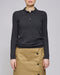 A. P.C.'s polo is crafted from 100% wool, offering substantial warmth and comfort. The anthracite gray hue provides versatile styling options, while the ribbed texture adds visual depth throughout the garment. Long sleeves and a classic polo collar define the silhouette, creating a piece that transitions smoothly between casual and semi-formal settings. The construction emphasizes quality, with careful attention to the ribbed detailing that runs across the entire piece.
