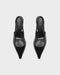 The sleek metallic buckle features a polished finish that complements the black nappa leather. Crafted with precision, this adjustable closure element allows for a customized fit while adding a refined detail to the slingback design. The buckle's minimalist shape maintains the shoe's clean aesthetic while ensuring secure wear.