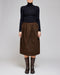 This brown Sonista skirt from Dries Van Noten showcases the brand's commitment to refined craftsmanship. Manufactured in Italy with meticulous attention to detail, the skirt features a structured silhouette that creates a sophisticated shape. The design combines understated style with considered proportions, making it suitable for various social occasions.