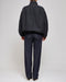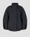 The jacket's carefully considered proportions create a striking visual balance. Wide sleeves complement the gathered hem detail, while the structured high neck adds a contemporary finishing touch to this sophisticated piece.