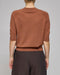 The short sleeves distinguish this sweater from traditional knits, offering a fresh perspective on wool pieces. This design choice extends the wearing season beyond the cooler months, allowing for layering or standalone wear during transitional weather. The sleeves feature subtle ribbing that complements the overall structure while maintaining the sweater's minimalist aesthetic. This approach balances the warmth of wool with increased versatility throughout the year.
