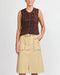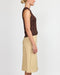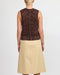 A knitted top that combines brown and black tones, suitable for those who value practical elements in their wardrobe. The round neckline provides a simple base for styling.
