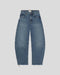 The curved outseams along the legs create a noticeable silhouette that complements the wide-leg design. This architectural detail adds visual interest while maintaining the jeans' contemporary appeal. The curved lines offer versatility for various styling options, while the thoughtful construction enhances the natural flow of the denim, making these jeans a standout piece in any wardrobe.