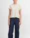 The Jeanerica Cream Ines Toki T-shirt offers a clean, simple design with a classic crew neck and short sleeves, making it versatile for various occasions.