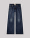 Jeanerica's Kyoto Jeans are crafted with attention to detail, showcasing a rich dark blue hue with artfully faded areas across the thighs and knees. Made from 64% recycled cotton, 22% viscose, and 14% recycled materials, these jeans reflect a commitment to quality fabrication. The wide-leg design offers a modern silhouette, while the classic five-pocket layout maintains a refined aesthetic. Belt loops and a button closure at the waistband complete the construction.