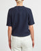 The Jeanerica Navy Fleur Blouse combines craftsmanship with contemporary style. Made from 100% brushed virgin wool, it features raglan sleeves that create a distinctive shoulder line. The boxy, cropped silhouette and round neckline with a back zipper closure reflect current fashion trends. This versatile piece showcases a refined approach to everyday wear, blending comfort with a polished appearance. The brushed finish adds natural softness.