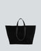 The bag's architectural form creates a striking presence through its clean lines and considered proportions. The black suede construction adds subtle texture while maintaining the minimalist aesthetic that defines this sophisticated tote.