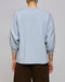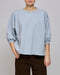 De droppede skuldre og den rå kant skaber en nutidig silhuet. Materialeblandingen giver sweatshirten en blød fornemmelse mod huden, mens den bevarer sin form gennem dagen. Den blå nuance fungerer som et diskret statement.