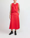 The Rika Studio Chloe Skirt in Rose Red features a striking hue and thoughtful design. This Italian-crafted midi skirt showcases an A-line silhouette that complements various body types. The vibrant rose red color adds a bold touch to any ensemble, making it a standout piece for those seeking a versatile fashion item. The A-line design creates a flattering shape that gently flares from the waist to the hem, offering both comfort and style.