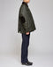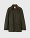 The brown velvet collar and pockets add a touch of sophistication and contrast to the dark green oilskin fabric. Velvet is celebrated for its soft texture and luxurious appearance, enhancing the overall aesthetic of the jacket while providing additional comfort around the neck area.