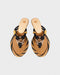 Handcrafted in Italy, these Ugo Paulon mules showcase a distinctive design with a tan base featuring black stripes and silver spiral accents. Braided black straps add refined texture, while the 50mm kitten heel ensures stylish comfort. Each pair reflects the meticulous attention to detail that Italian artisans are known for, combining craftsmanship with contemporary appeal.